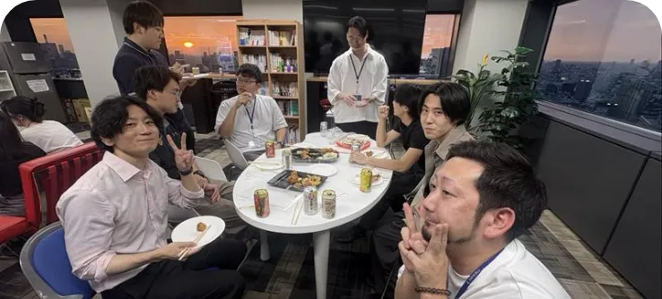 年数回、仕事終わりに社内のリフレッシュスペースにて軽食を囲みながらのライトな会を実施。リラックスした雰囲気で部署間を越えた交流しています。